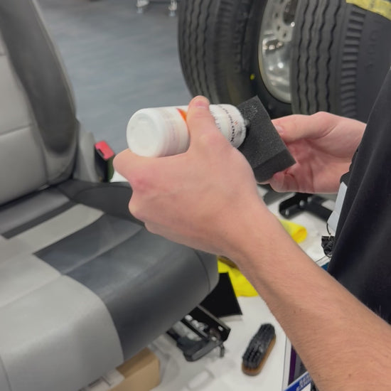 Firstly, clean the leather thoroughly and prepare the surface. UseĀ Mild Leather Cleaner for normal degrees of soiling or Strong Leather CleanerĀ to remove heavier dirt (where the leather has been neglected for many years). Cleaning prior to treatment ensures the paint bonds to the surface well and ensures durability. Use Leather Cleaning Brush to effectively remove all ingrained dirt. Cleaning removes dirt but for long lasting results you should also de-grease usingĀ Degreaser.